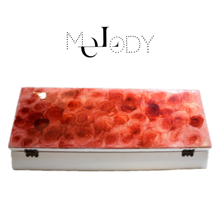 جعبه چوبی رزینی تو مخمل Melodyart مدل گل رز قرمز