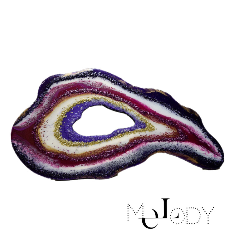 این اثر با الهام از ساختار زیبای سنگهای ژئود و با استفاده از رزین، رنگدانههای خاص و اکلیل طراحی شده. مناسب برای دکورهای خاص، عاشقان هنر و افرادی که به دنبال زیبایی متفاوت در خانه یا محل کارشون هستن.