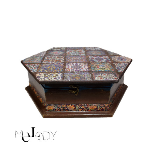 جعبه دکوری پتینه چوب Melodyart مدل سنتی 6 ضلعی