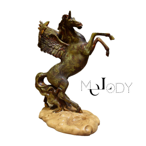 مجسمه و جا وارمری دکوری پتینه پلیاسترMelodyart مدل اسب بال