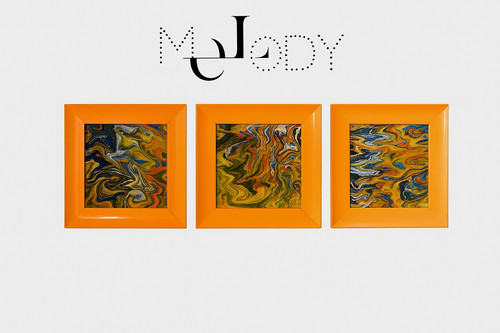 تابلو سه تیکه Melodyart مدل آبستره با قاب نارنجی