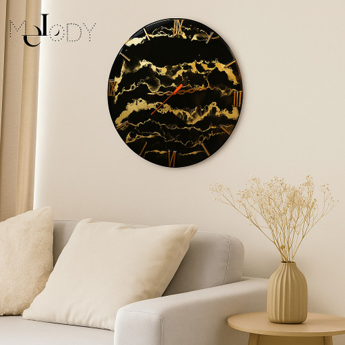 ساعت دیواری رزینی مرمر مکی طلایی مدل melodyart
