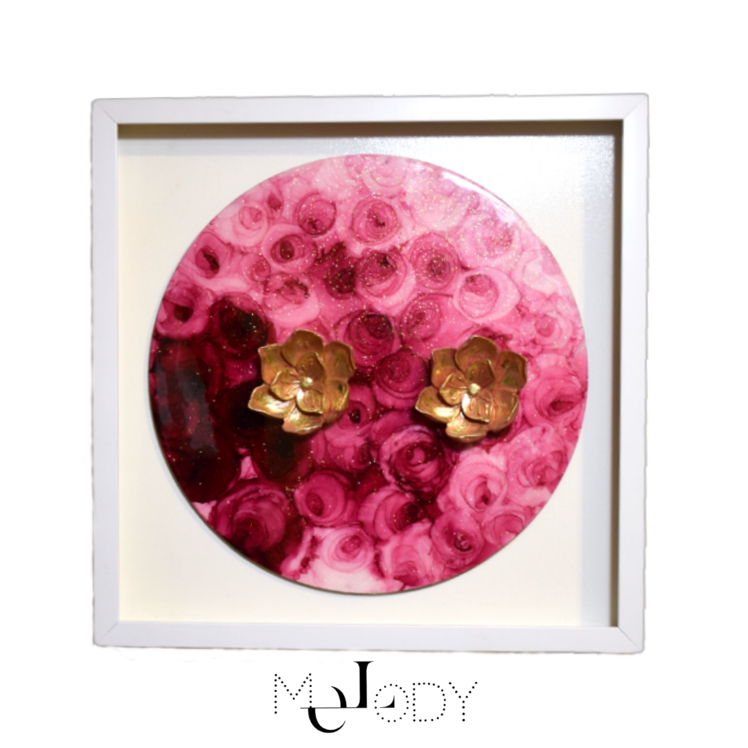 تابلو دیوارکوب رزینی Melodyart مدل رز های سورخ ابی و طلایی